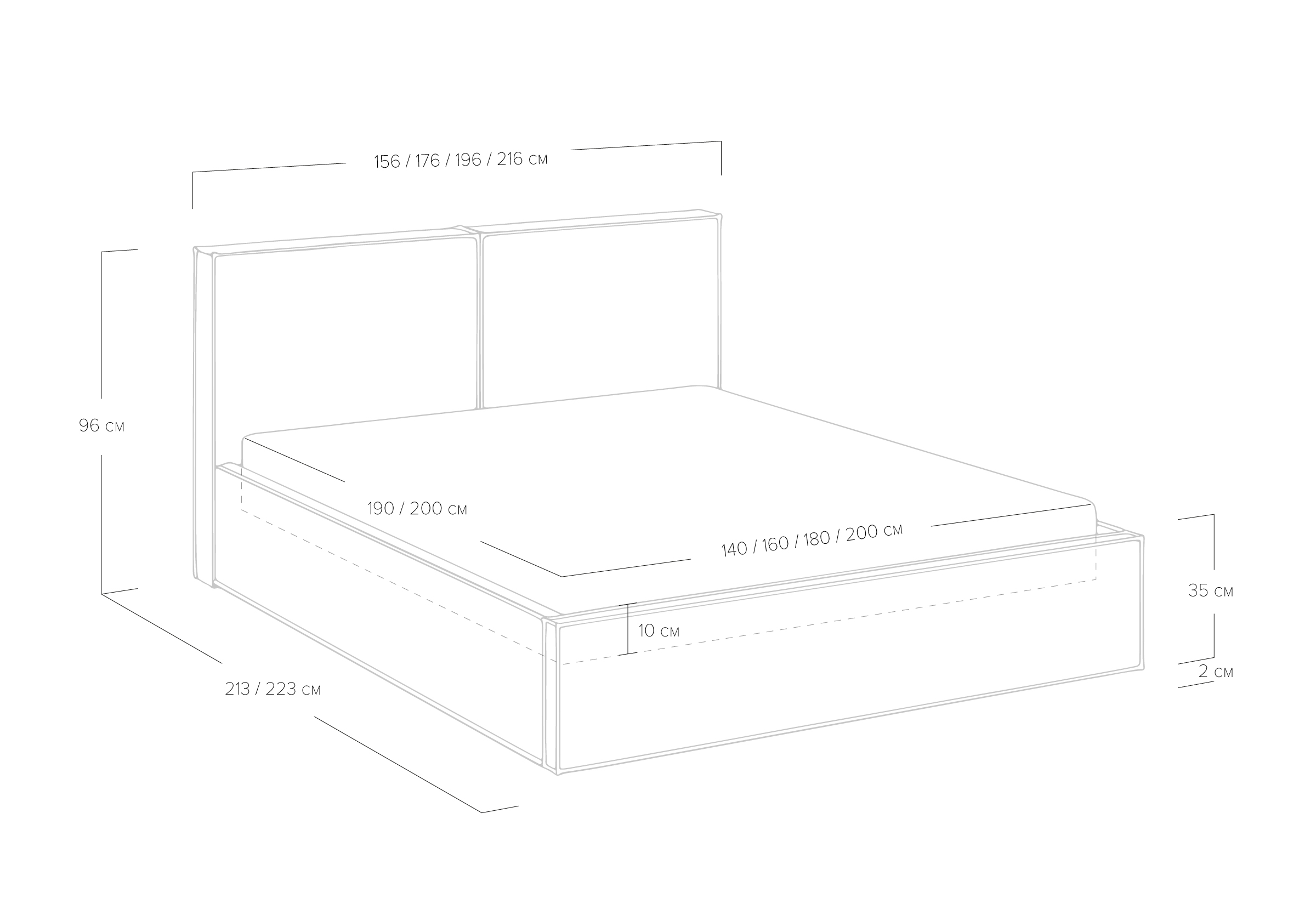 Возможна установка подъемного механизма с вместительным бельевым ящиком. Дно бельевого ящика легко сдвигается для обеспечения уборки под кроватью.